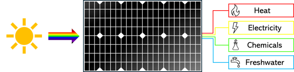 - This allows the solution to achieve higher electrical efficiency than conventional PV panels, while simultaneously delivering multiple energy outputs.